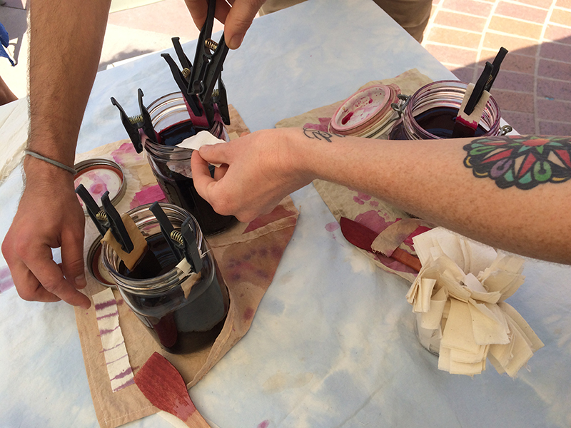 Weeks before the exhibition opened, students set up a booth at the Cal State LA Farmers Market. Visitors to the booth could make their own “seed bombs”, and Mass Commute stickers were given away to encourage alternative forms of transportation ranging from carpools to skateboards. Seed paper announcements for the show were given to viewers, and these could be planted later.