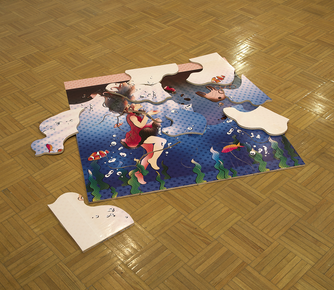 Water covers 71% of the earth’s surface. The ocean is a very important ecosystem that contributes to the survival of the human race, yet we keep destroying it by throwing trash and dumping chemicals into our precious waters. This piece is intended to show the viewer the horrific reality that we are all drowning inside our own waste with the inability to escape. By realizing this reality, it encourages the viewer to motivate themselves, and others, to take immediate action and help cleanse our oceans. Instead of placing pieces of our trash into the waters and causing its ecosystems harm, we should take a moment to replace the trash littering our oceans, and cleanse them from our filth. There is a solution to every puzzle, and the only method of solving it includes motivating oneself to take a piece of the answer and place it on top of the problem. Becoming self-aware is the first step, while taking action to find new ways to cleanse and purify our environment, is the second step. Much of our trash does not dissolve, but our oceans will "dissolve" if we do not take care of them.