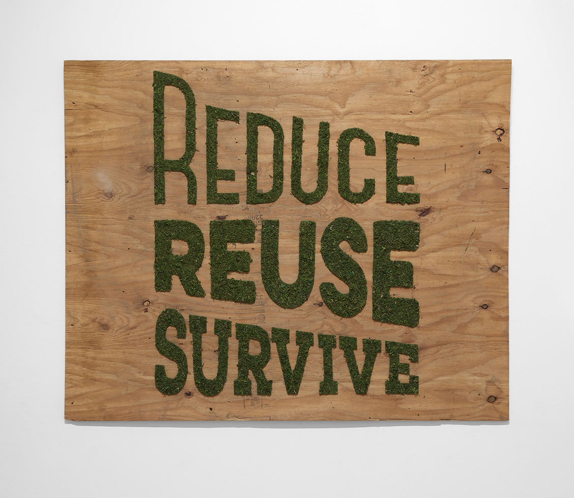 Reduce, Reuse and Survive presents a solution towards climate change by utilizing recyclable plywood and earth’s naturally preserved moss as mediums to create new forms of artistry. I’m seeking a form that breathes new life into wood and moss as materials while also reducing toxic chemicals being released into the earth’s atmosphere from aerosol paints.